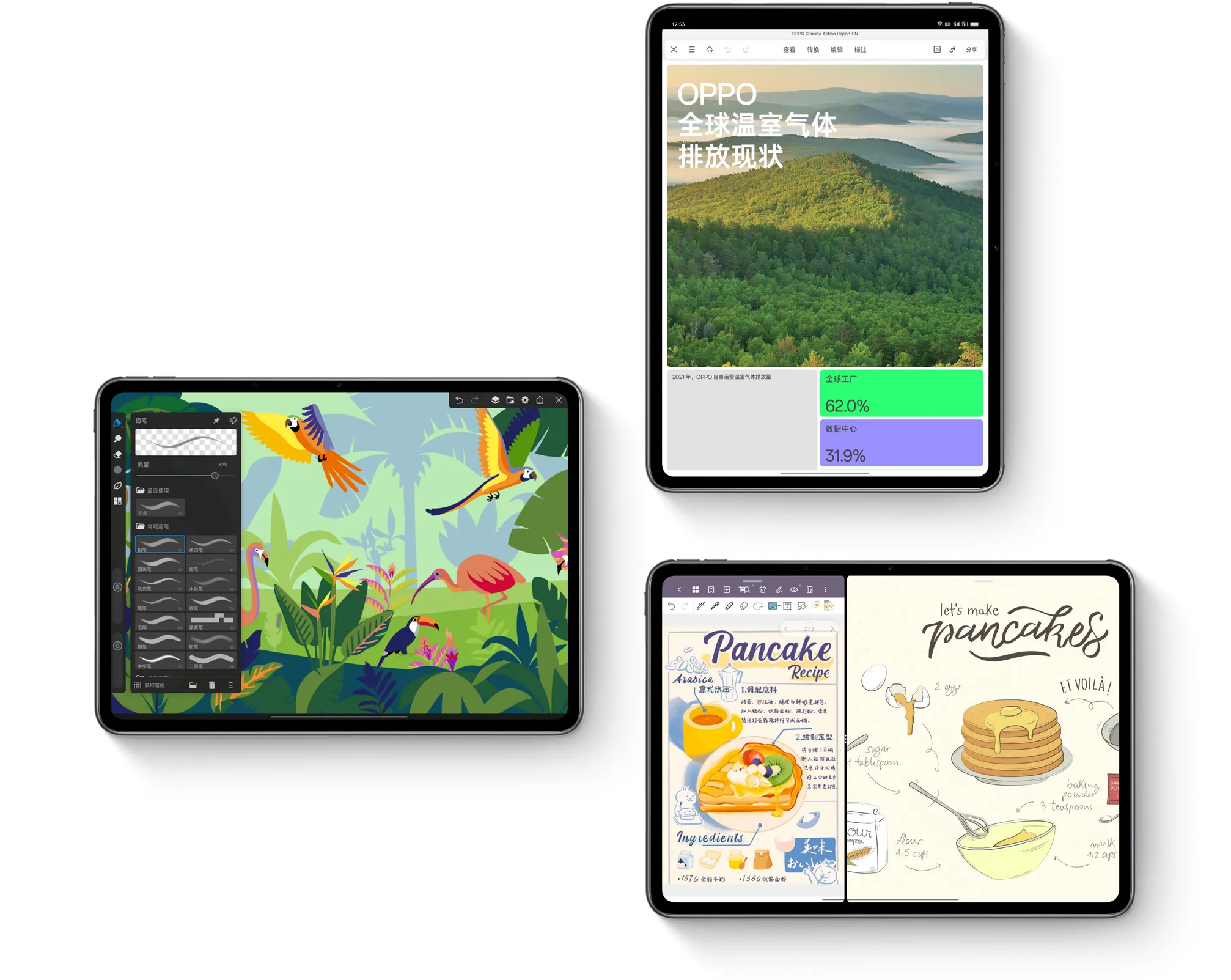 Với hiệu năng khủng này, OPPO Pad2 có đủ sức để đáp ứng các yêu cầu đồ hoạ của các tựa game cũng như các ứng dụng thiết kế như Lightroom, Photoshop Mix, Illustrator Draw, Sketchbook và nhiều ứng dụng khác. Ngoài ra, bạn cũng có thể sử dụng tablet này để thực hiện cuộc gọi video và sử dụng các ứng dụng học tập, ghi chú cùng lúc.